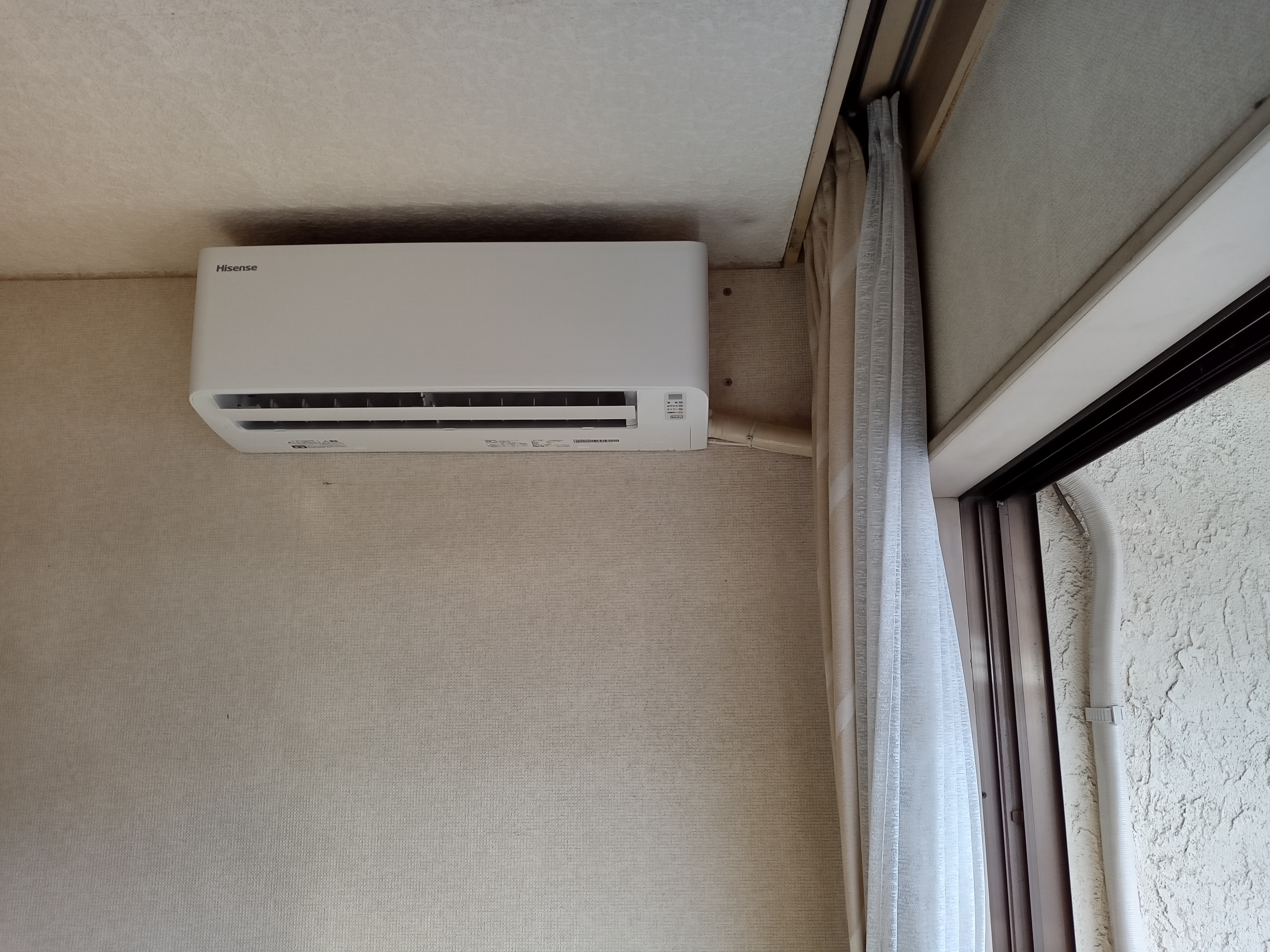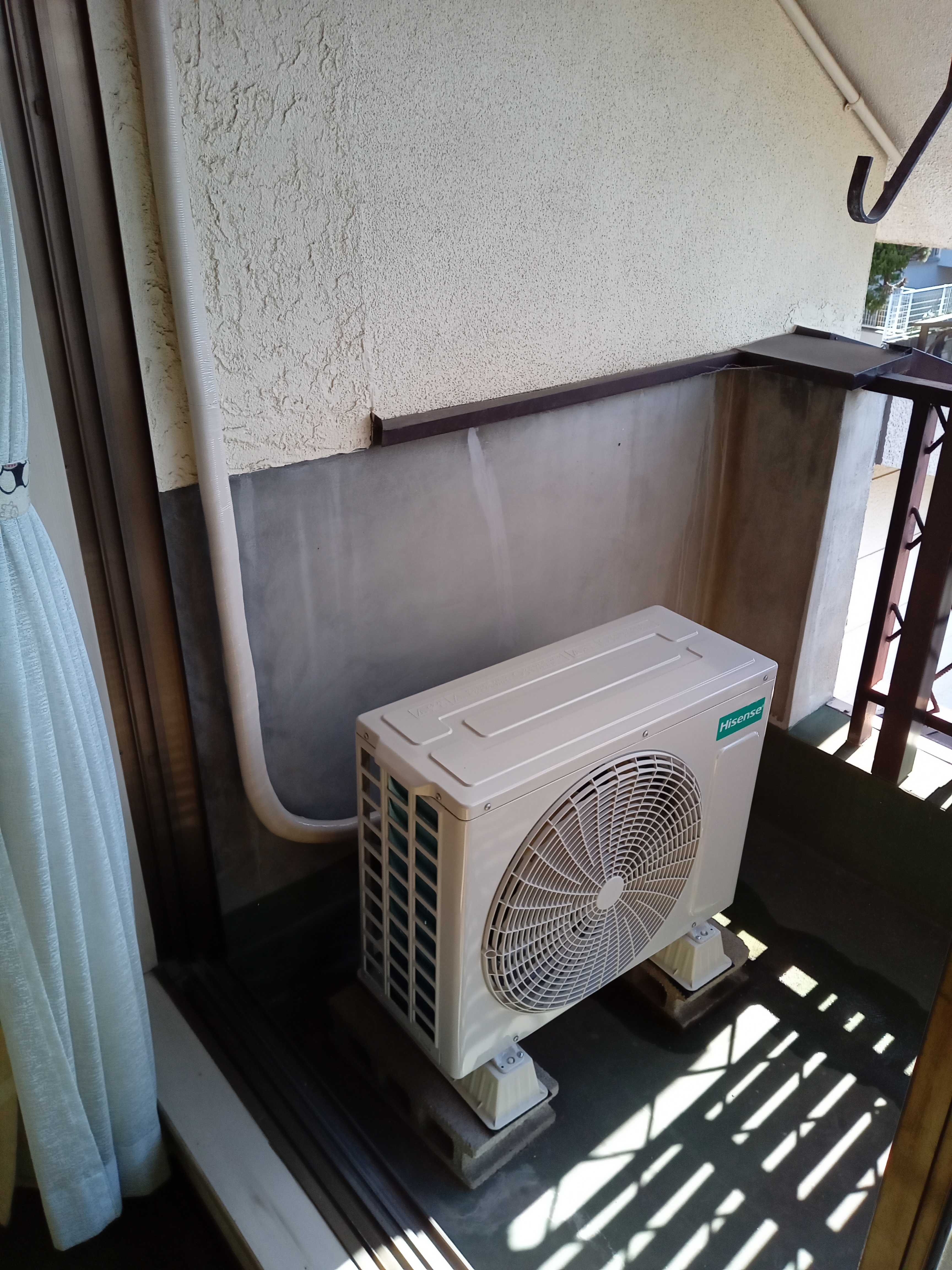泉南郡熊取町でルームエアコン工事を実施致しました。 室外機はベランダ設置です。