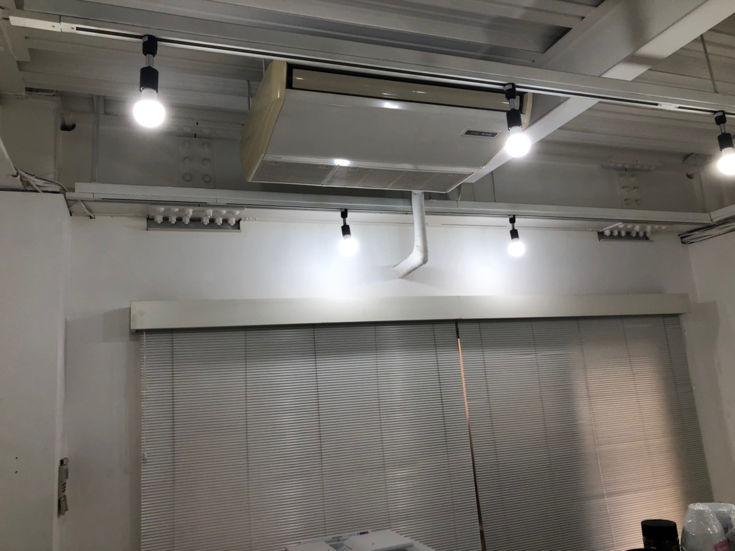 既存の業務用天吊り形エアコンを撤去。